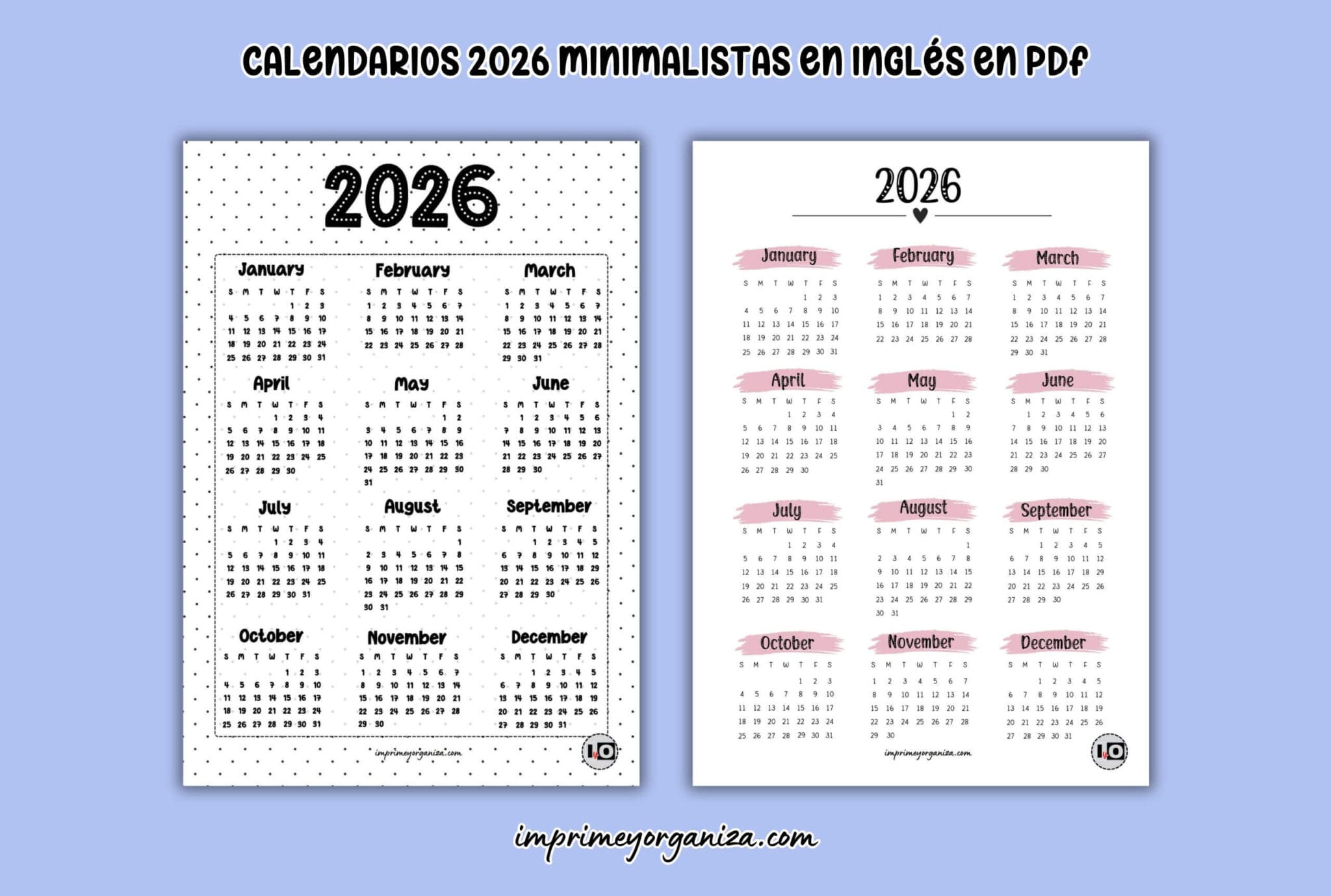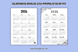 Calendarios Anuales 2026 Minimalistas en PDF [GRATIS]