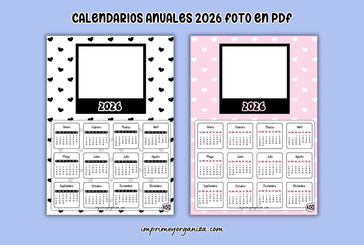 Calendarios Anuales 2026 Corazones Foto en PDF [GRATIS]