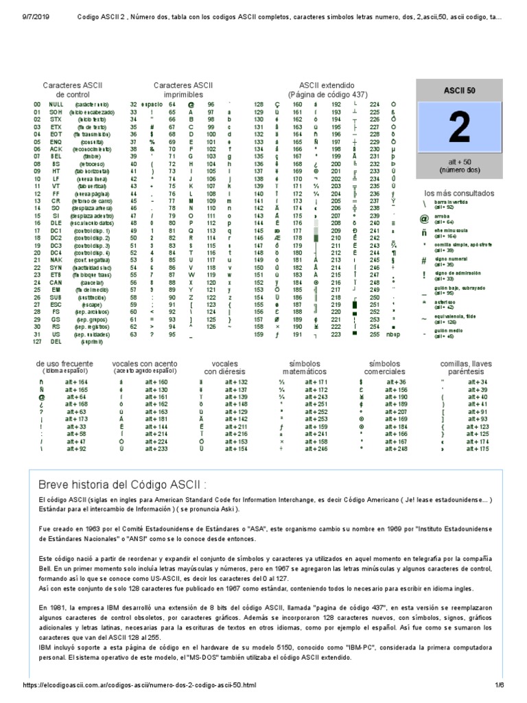 Codigo Ascii Completo Pdf – Tabla de código ASCII completa para ...