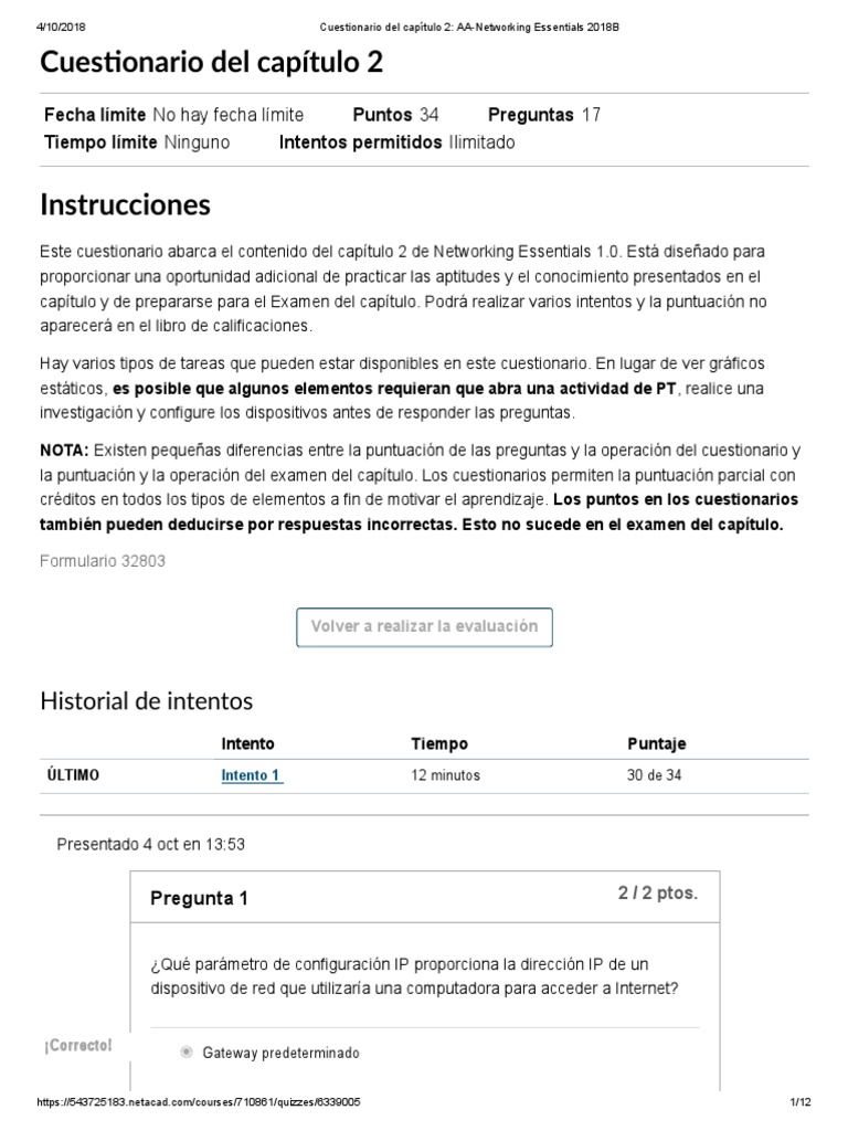 Cuestionario Networking Essentials 2018B | PDF | Dirección IP | Red de ...