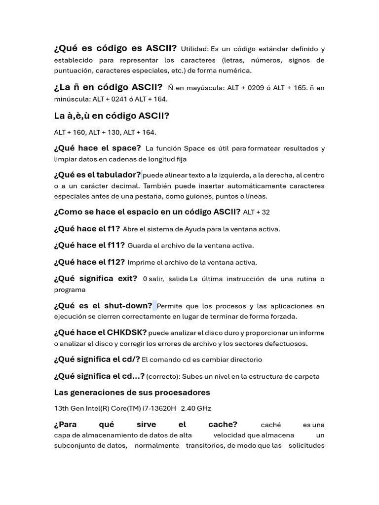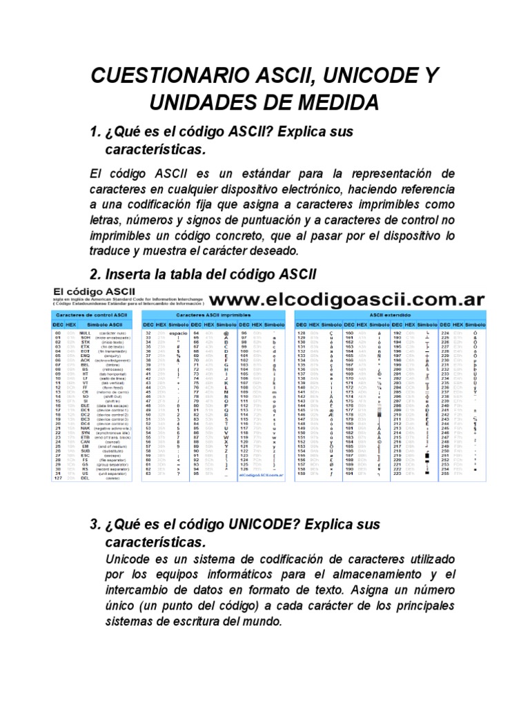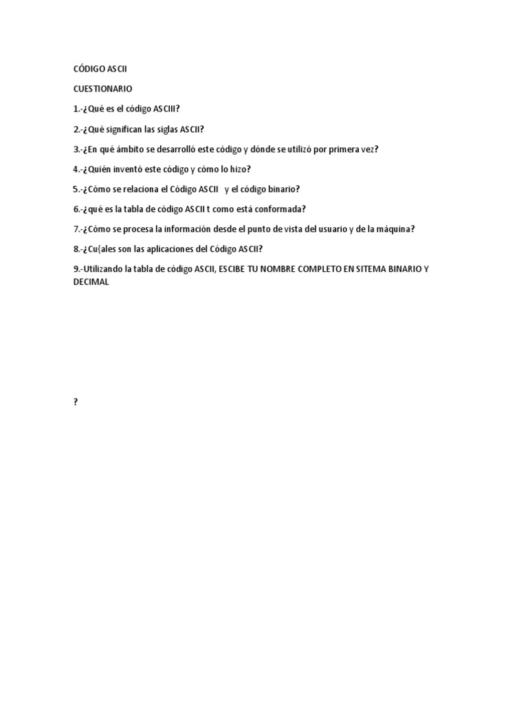 Guía de Preguntas sobre Código ASCII | PDF | Arte | Informática
