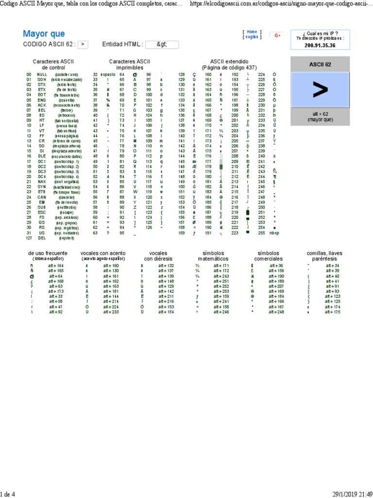 Codigo ASCII Acento Agudo, Tabla Con Los Codigos ASCII Completos ...