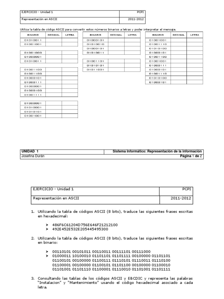 UT1 - Ejercicio 6 - Representación en ASCII, EBCDIC | PDF | Informática
