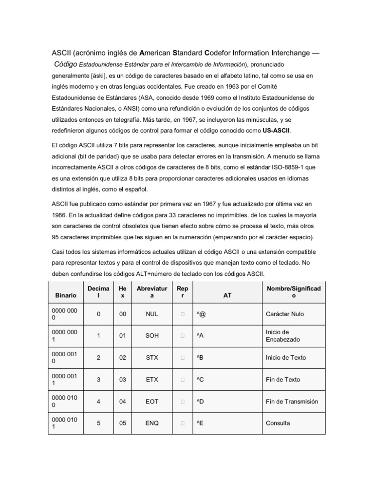 Codigo Ascii PDF | PDF | Ascii | Alfabeto latino