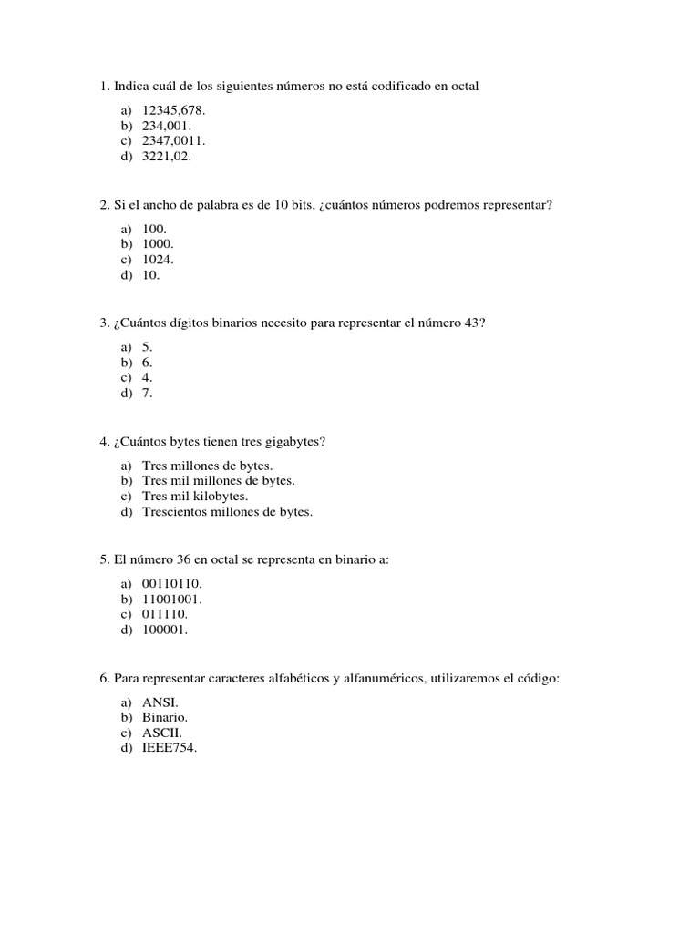 Preguntas de Codificación y Números | PDF | Informática | Tecnología