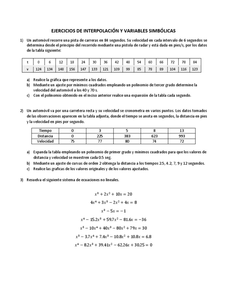 Ejercicios de Interpolación y Variables Simbólicas | PDF | Velocidad ...