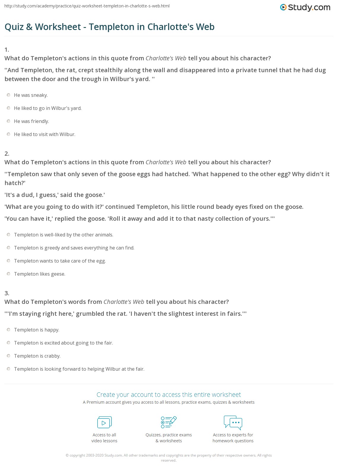 Quiz & Worksheet - Templeton in Charlotte's Web | Study.com