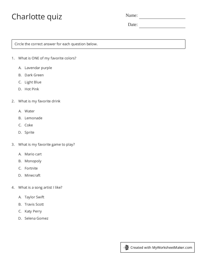 Charlotte quiz - My Worksheet Maker: Create Your Own Worksheets