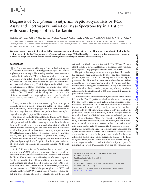 (PDF) Diagnosis of Ureaplasma urealyticum Septic Polyarthritis by PCR ...