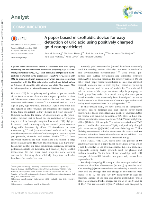 (PDF) A paper based microfluidic device for easy colorimetric detection ...