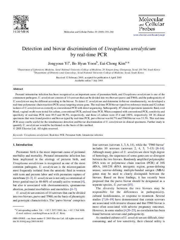 (PDF) Detection of ureaplasma urealyticum by polymerase chain reaction ...