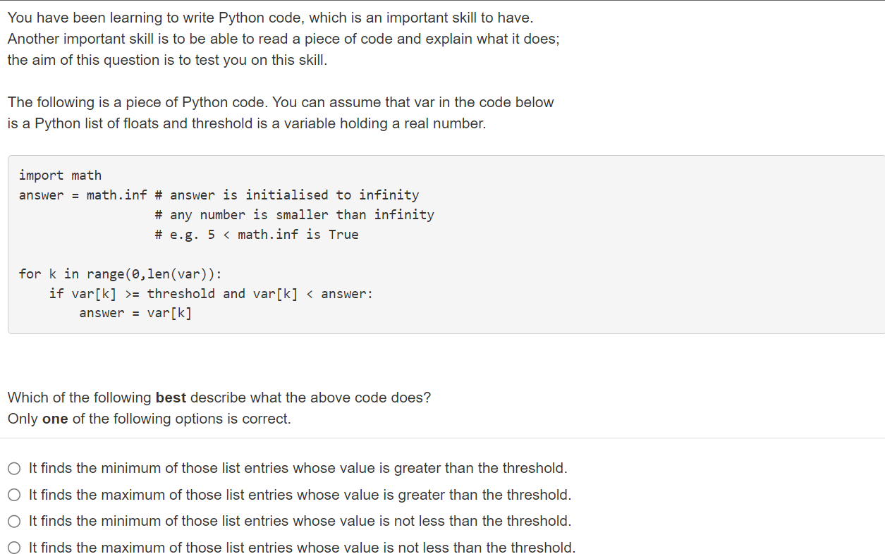 Based on this image's title: “Solved Reading code You have been learning to write Python | Chegg.com”
