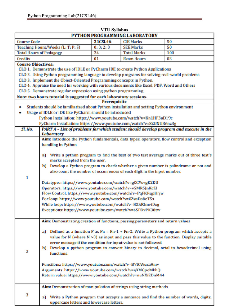 21csl46-Python Lab-Manual | PDF | Python (Programming Language ...
