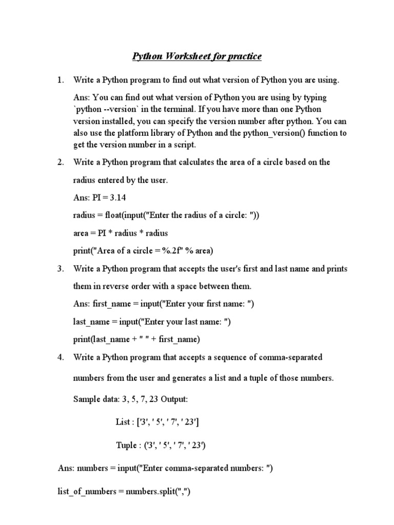 Based on this image's title: “Python Worksheet For Practice | PDF | Python (Programming Language ...