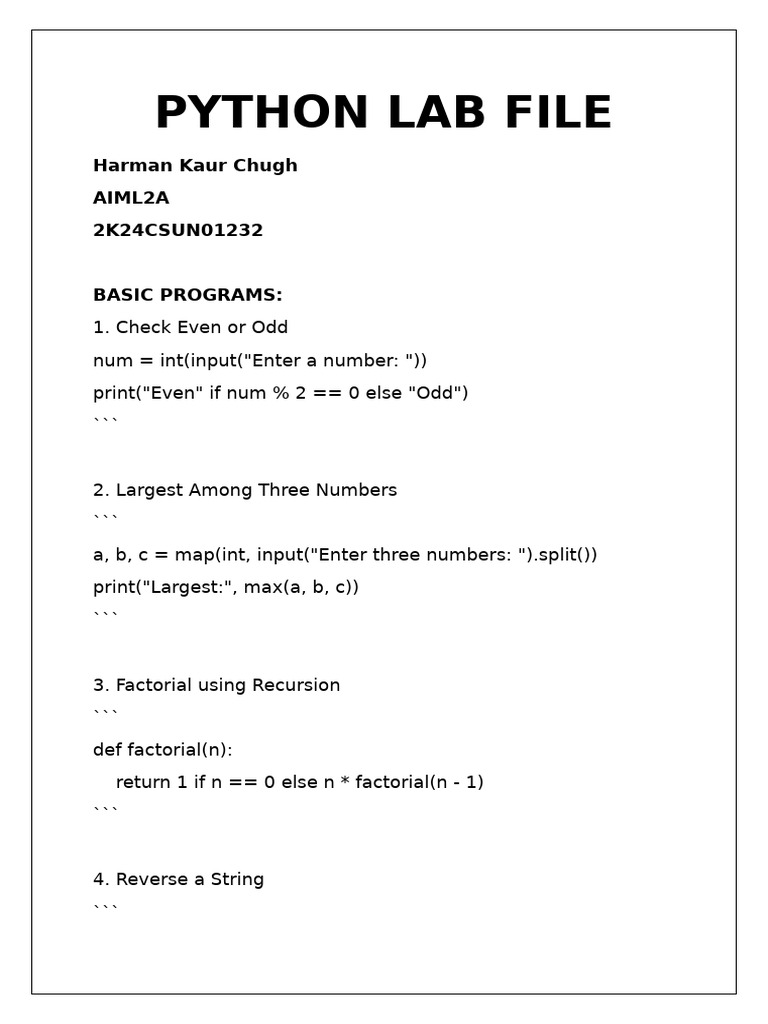 Python Lab File Harman 2K24CSUN01232 | PDF | Software Engineering ...