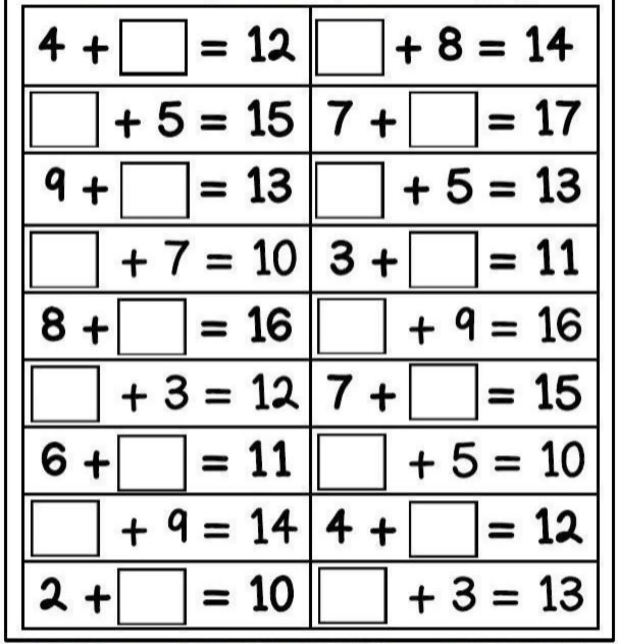 +30 Ejercicios de sumas con números faltantes ¡PDF!