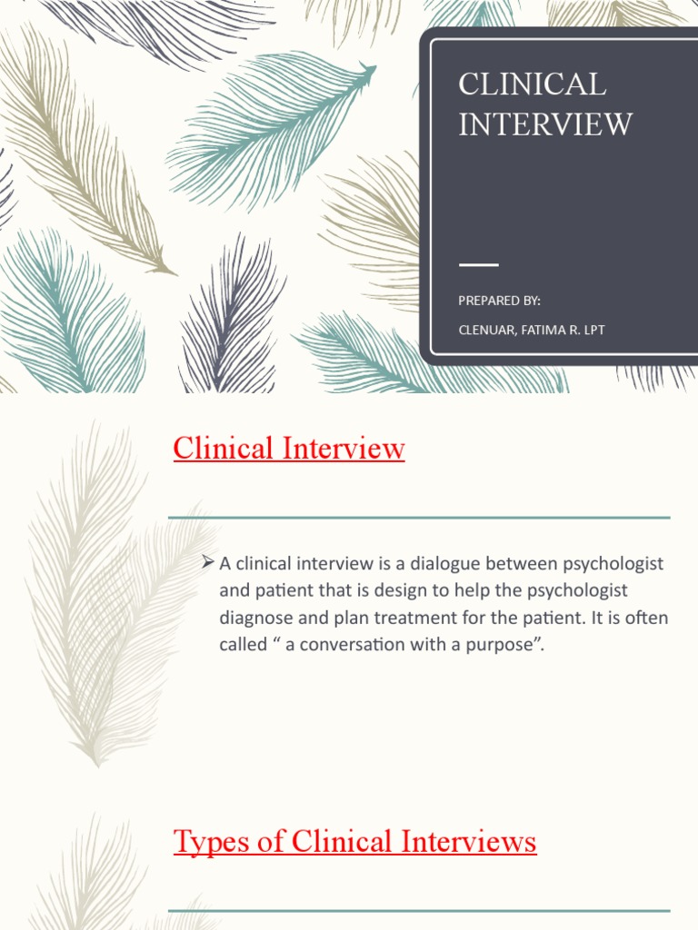 Clinical Interview: Prepared By: Clenuar, Fatima R. LPT | PDF | Career ...