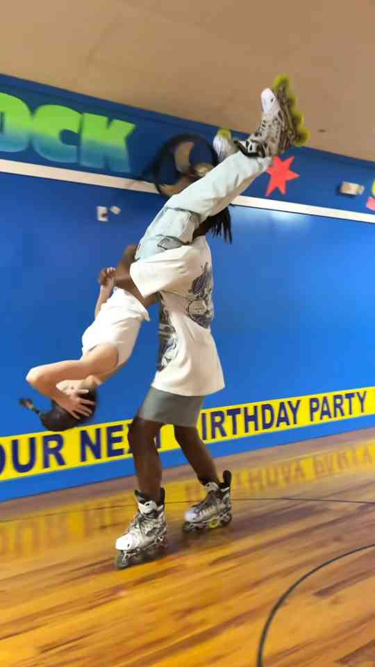 Rollerblading skills with NLE Choppa at the rink high energy skate session
