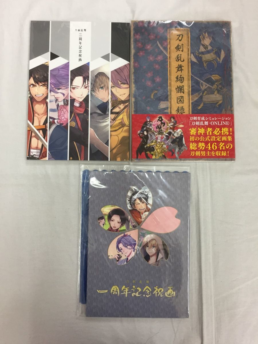 A00 雑誌 刀剣乱舞 刀剣乱舞絢爛図録 + 一周年記念祝画 + 二周年記念祝画 3冊セット/紋クリアファイル&三日月宗近 ミニ色紙付(ゲーム ...