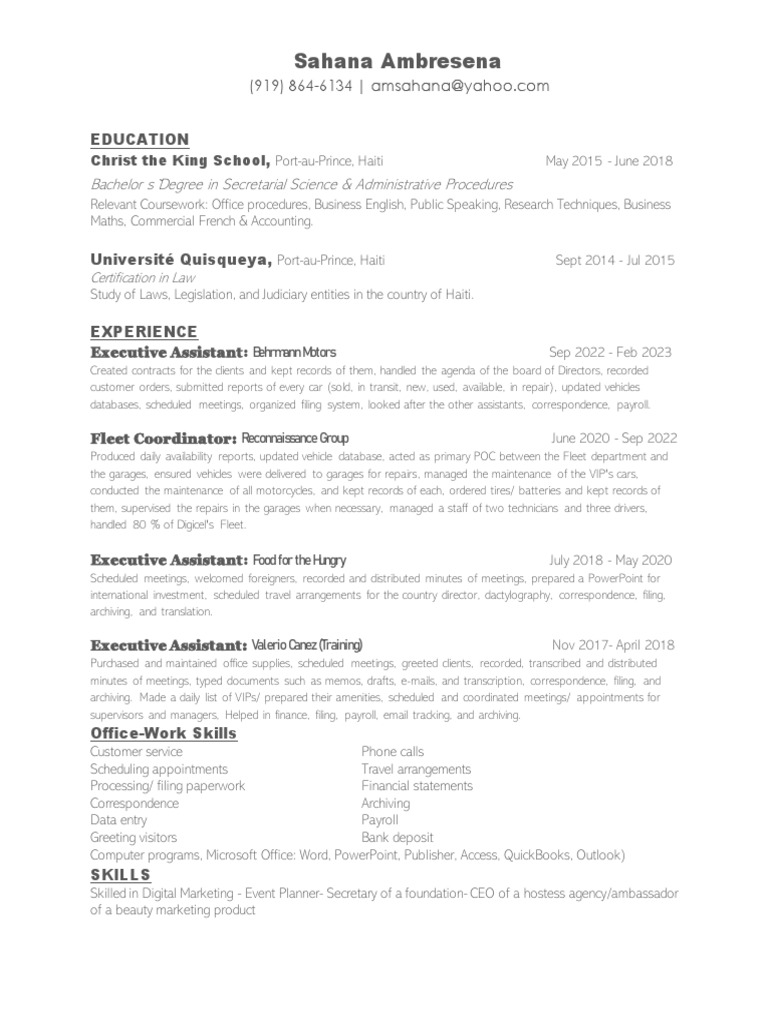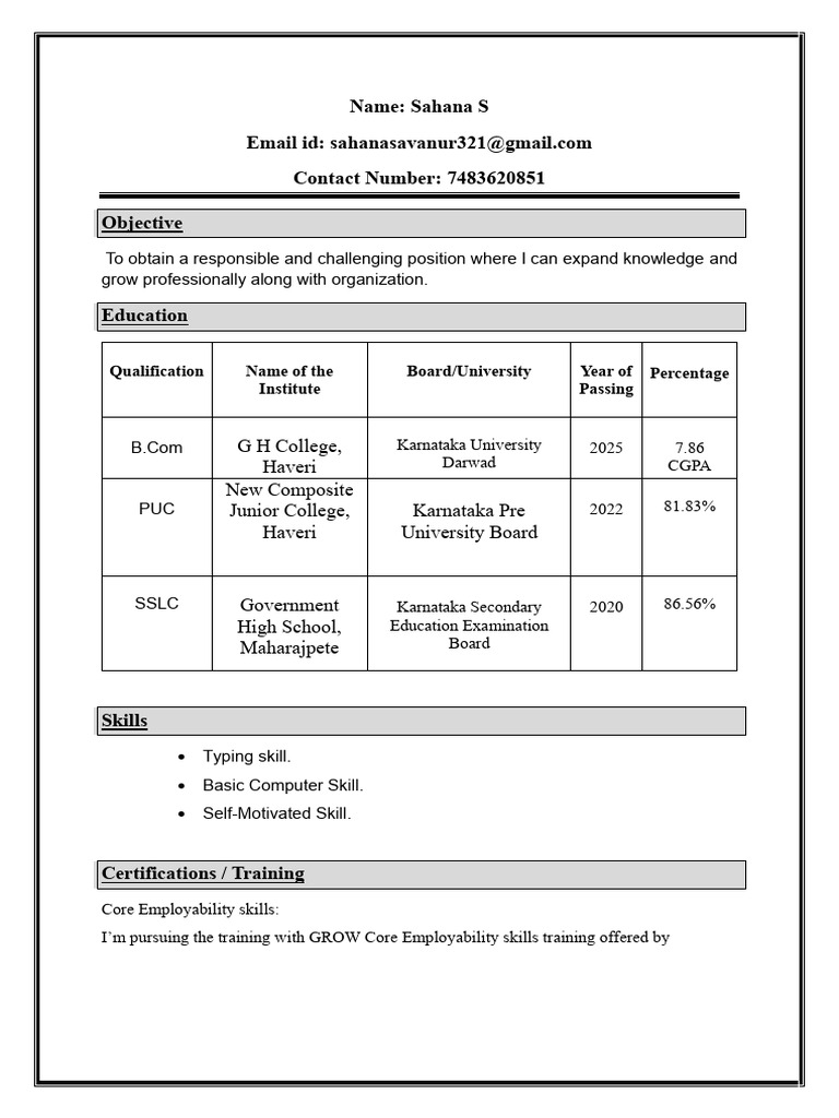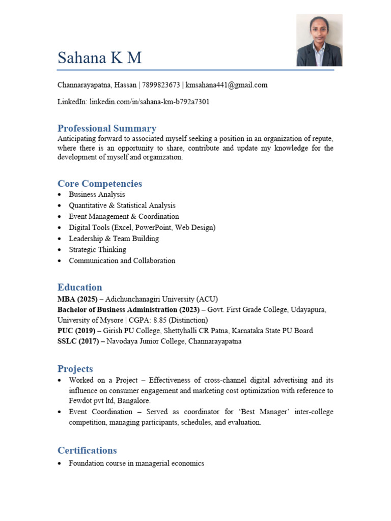 Sahana S Administrative Qualifications 1689683372 | PDF