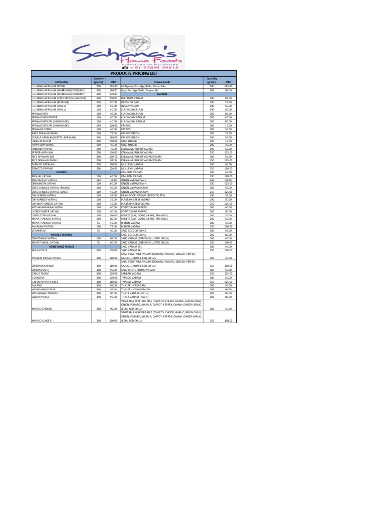 Sahana's Home Foods - Pricing Master Jun'21 | PDF | Pickling | Indian ...