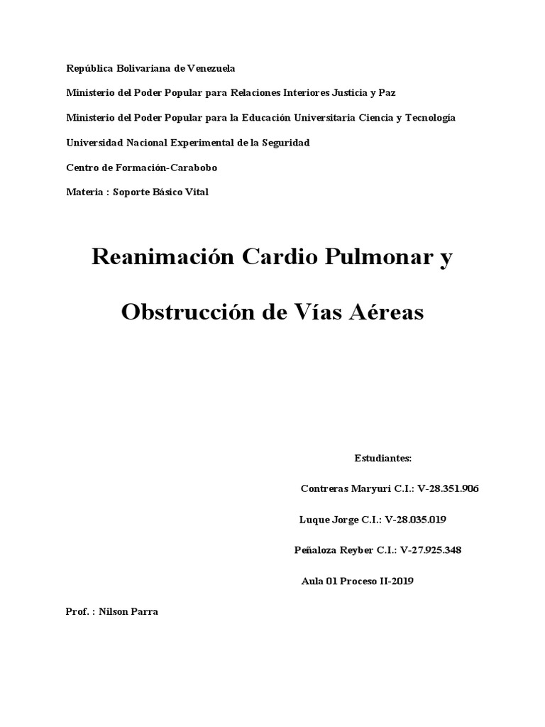 Guía RCP y Obstrucción Aérea | PDF | Reanimación cardiopulmonar | Paro ...