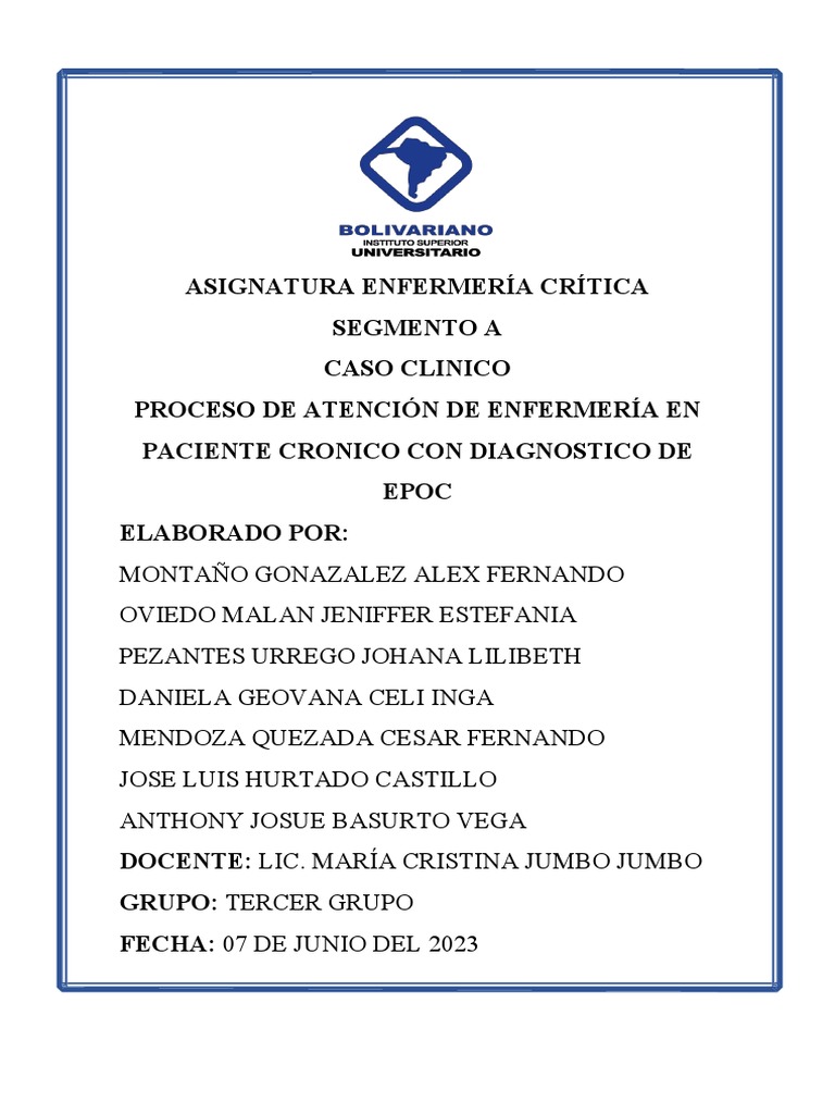 Epoc enfermería. Cuidados de enfermería a pacientes con enfermedad ...