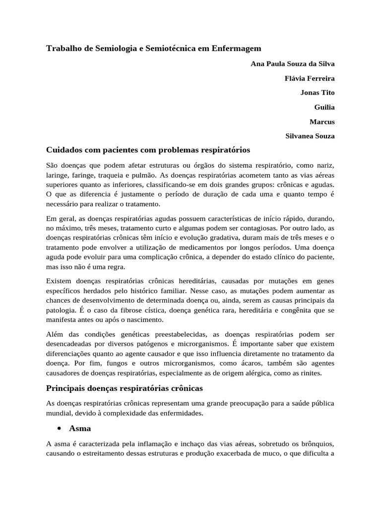 Cuidados com pacientes com problemas respiratórios (1) | PDF ...