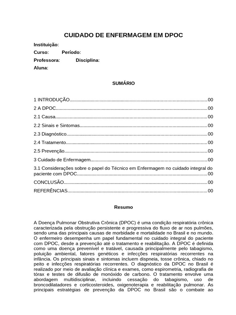 Cuidados de Enfermagem na DPOC | PDF | Doença de obstrução pulmonar ...