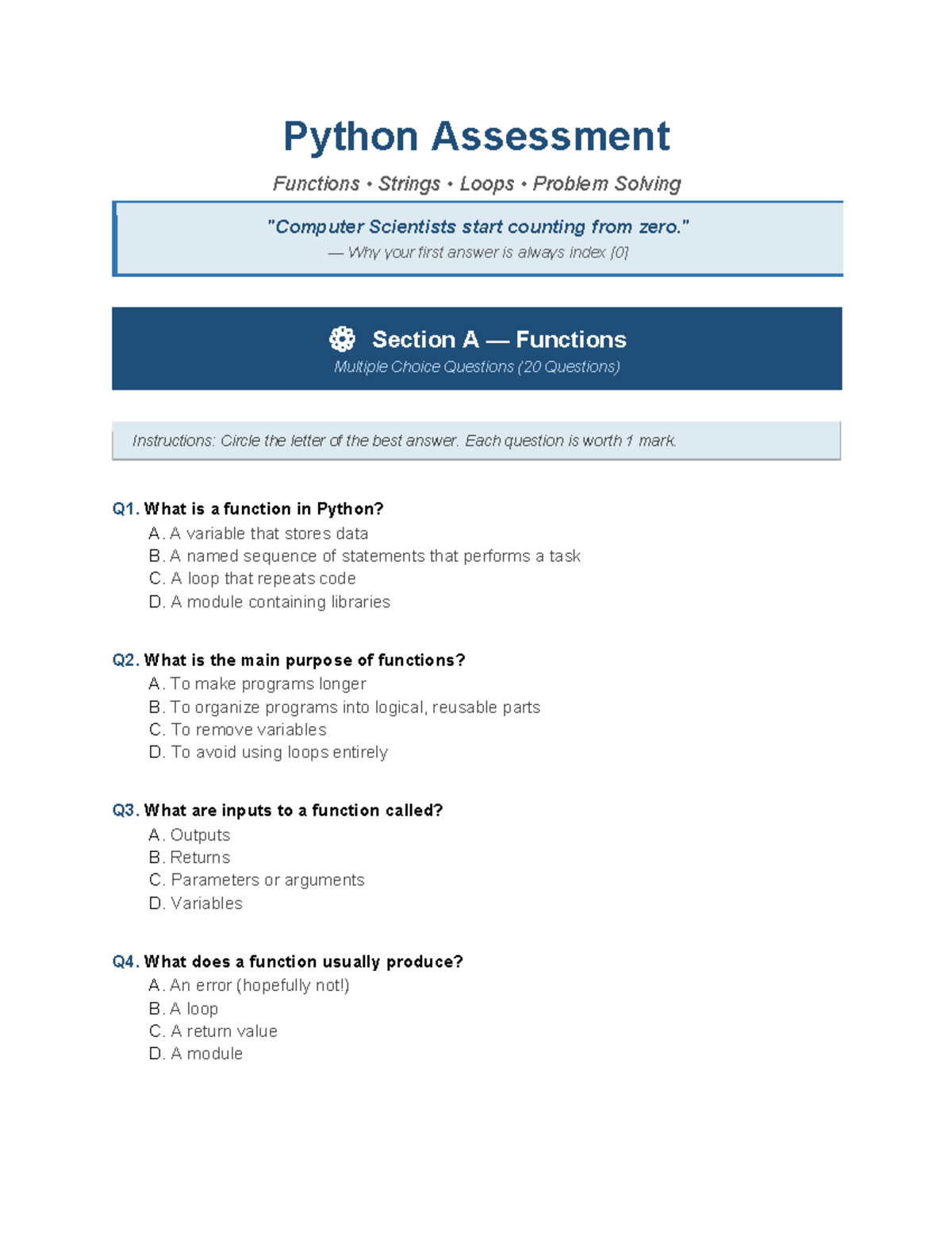 SI Worksheet Six - Python Functions, Strings & Loops Assessment - Studocu