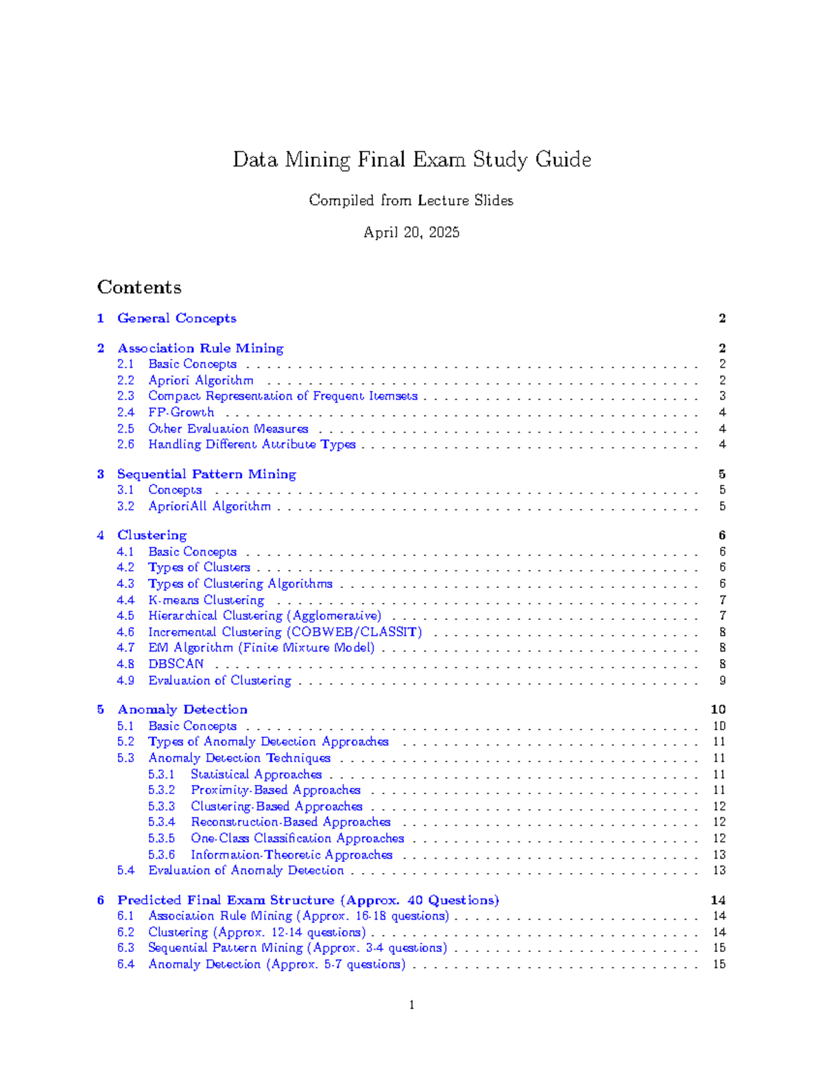 CPS844 Data Mining Final Exam Study Guide from Lecture Notes - Studocu