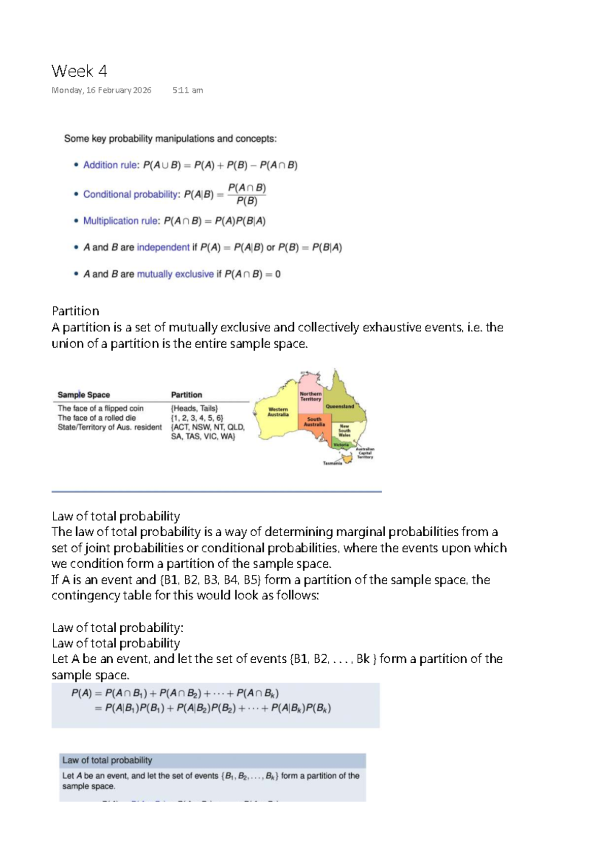 STAT1070 Week 4 Lecture Notes: Probability and Distributions - Studocu