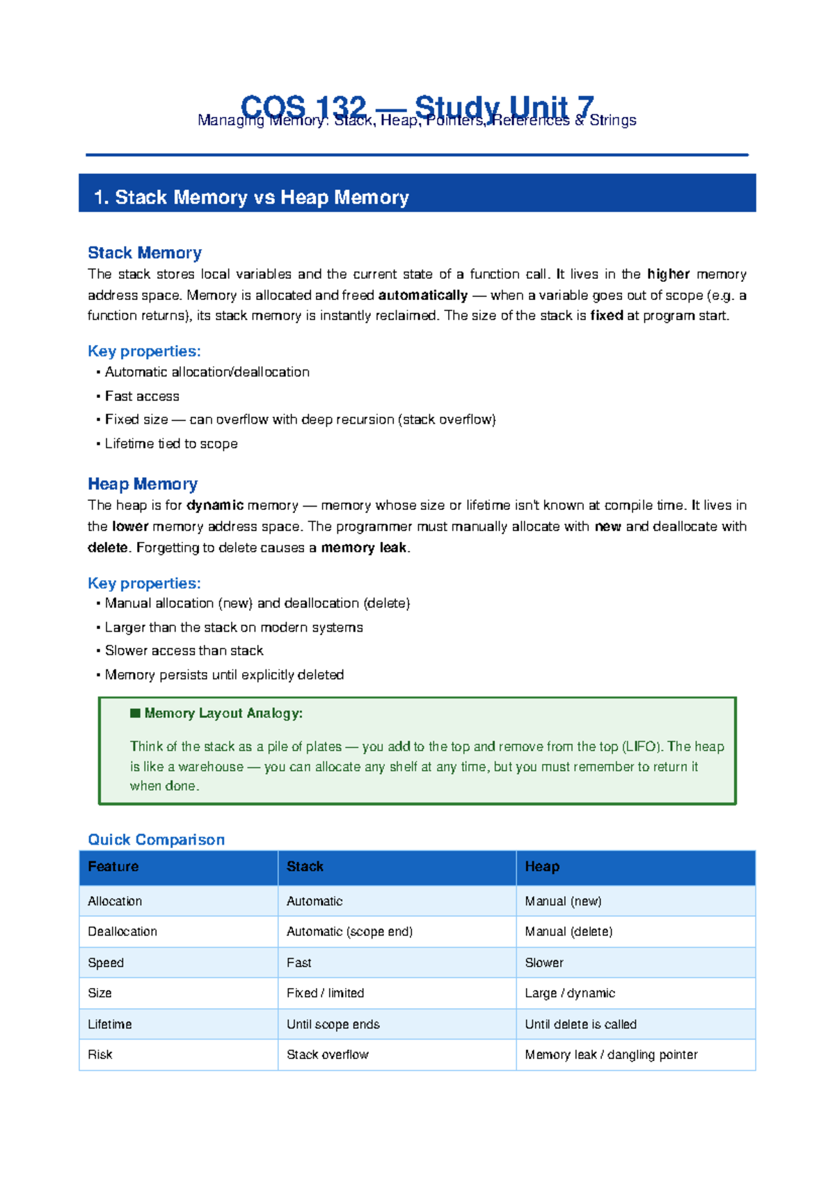 COS 132 S1 2026 Study Unit 7: Managing Memory Notes & Examples - Studocu
