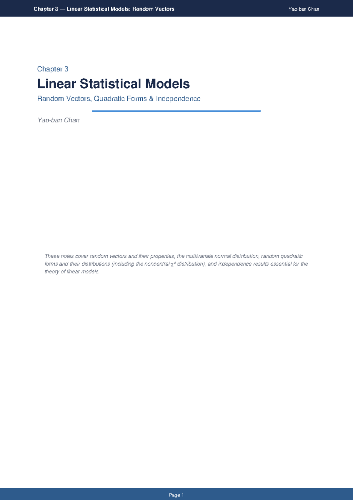 Chapter 3: Random Vectors in Linear Statistical Models (Chan) - Studocu