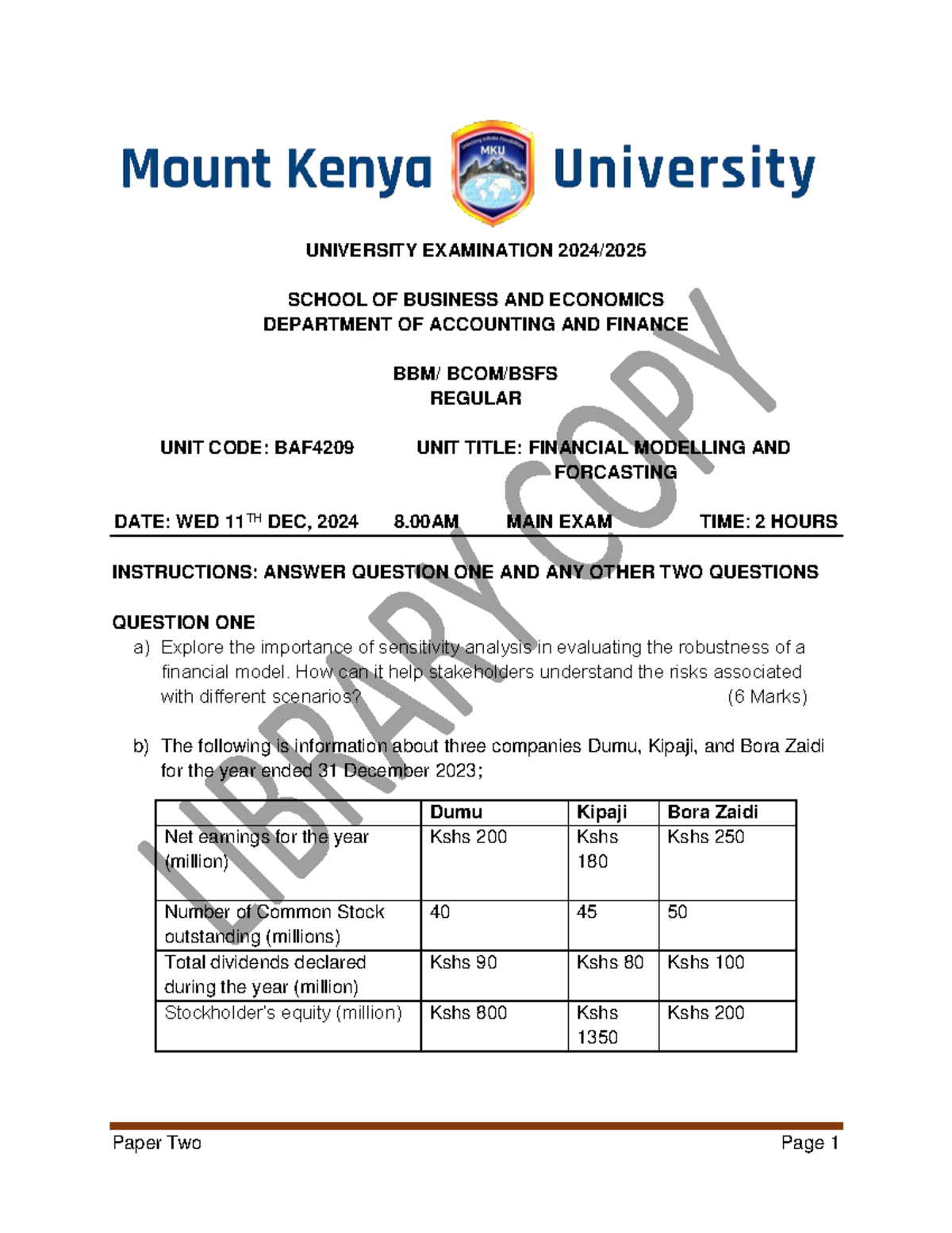 BAF4209 Final Exam: Financial Modelling and Forecasting Insights - Studocu