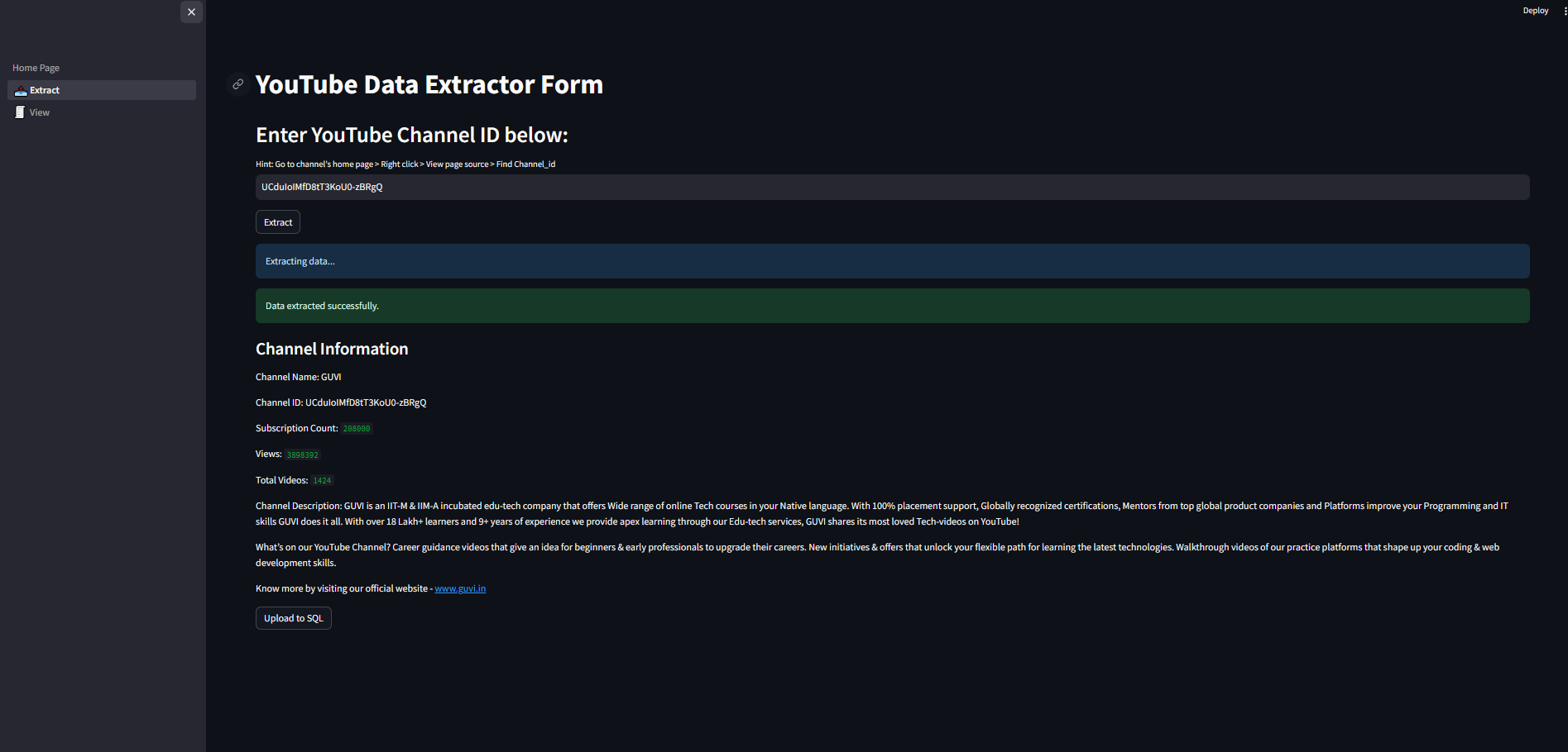 YouTube Data Extractor Project