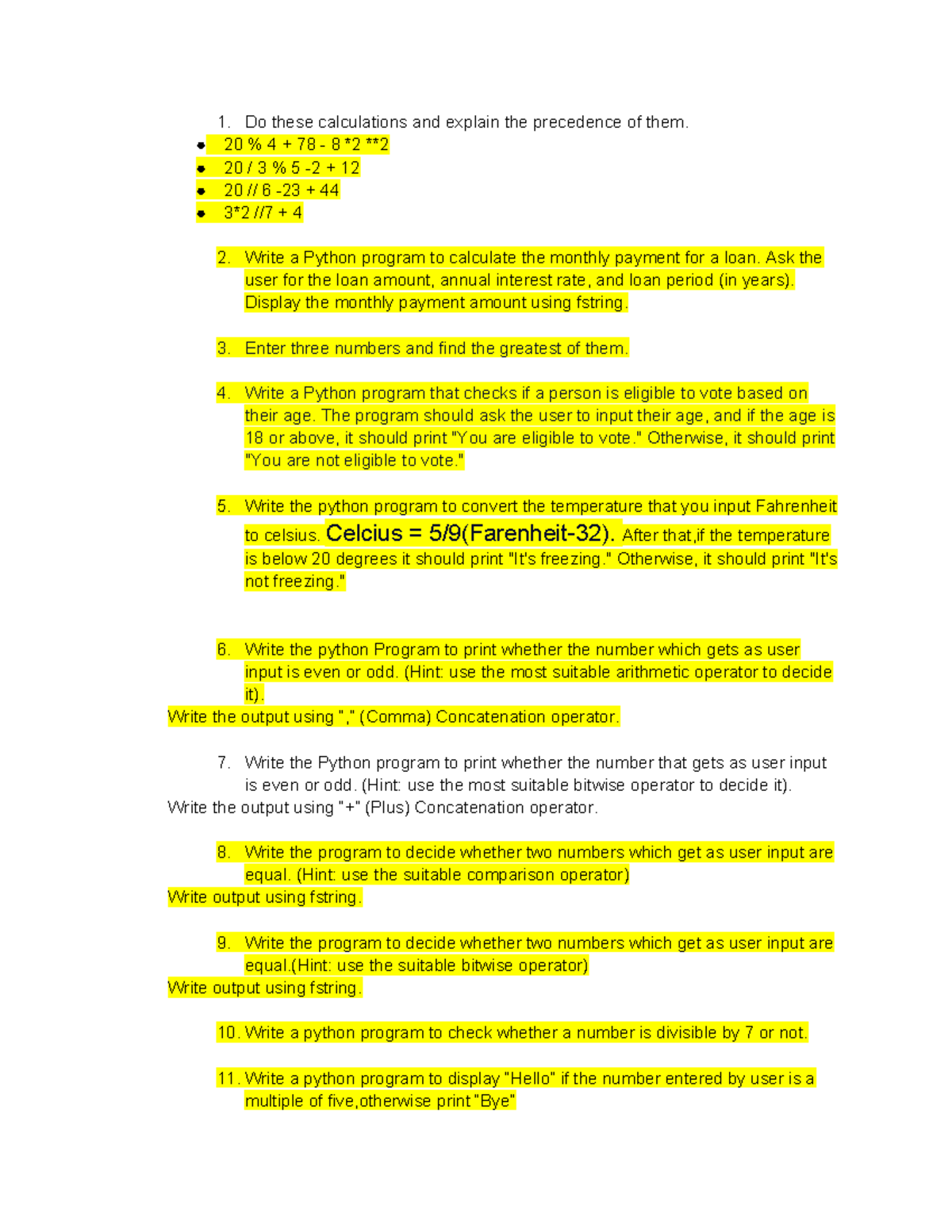 Python Tutorial 3 - 1. Do these calculations and explain the precedence ...