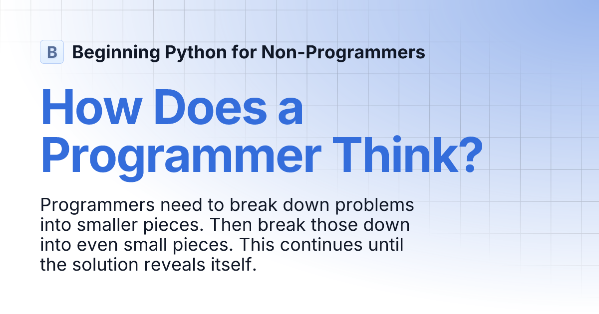Based on this image's title: “How Does a Programmer Think? | Beginning Python for Non-Programmers”