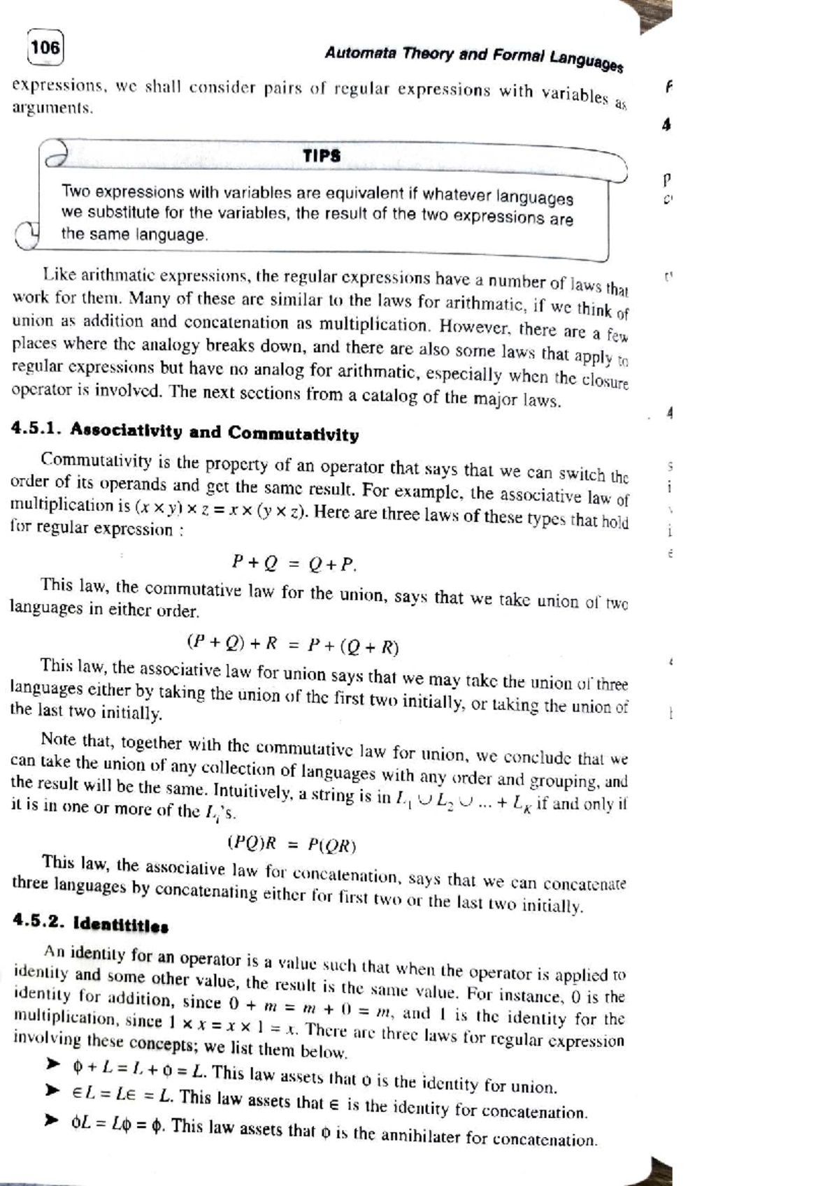 Algebraic Laws for Regular Expressions in Automata Theory (CS 101 ...