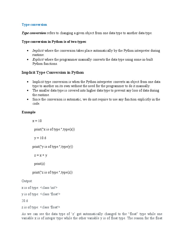 Introduction to Python II: Type Conversion, Output Formatting | Course Hero