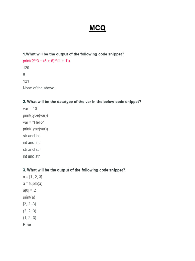 Python Code Output MCQs | PDF | Python (Programming Language) | Bracket