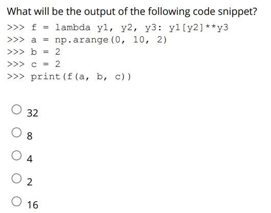 Solved Question 16 What is the output of the code snippet | Chegg.com