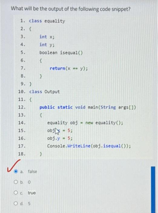 Solved What will the output of the following code snippet? | Chegg.com