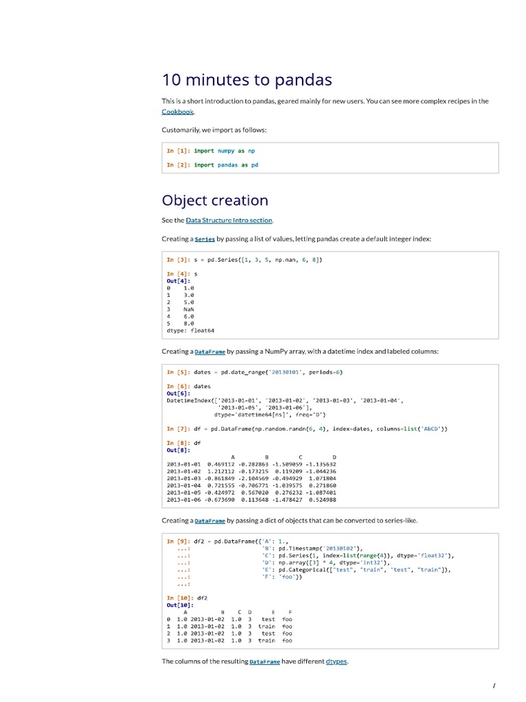 An Introduction to Pandas: 10 Minutes to Pandas | PDF | Information ...