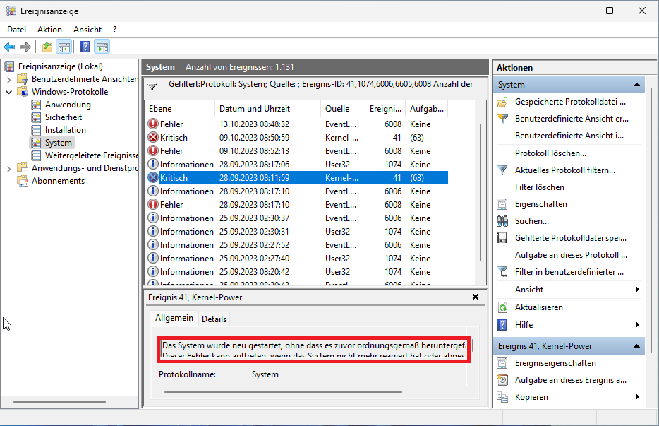Unerwartetes Herunterfahren - Windows 11 Pro | Windows 11 Forum