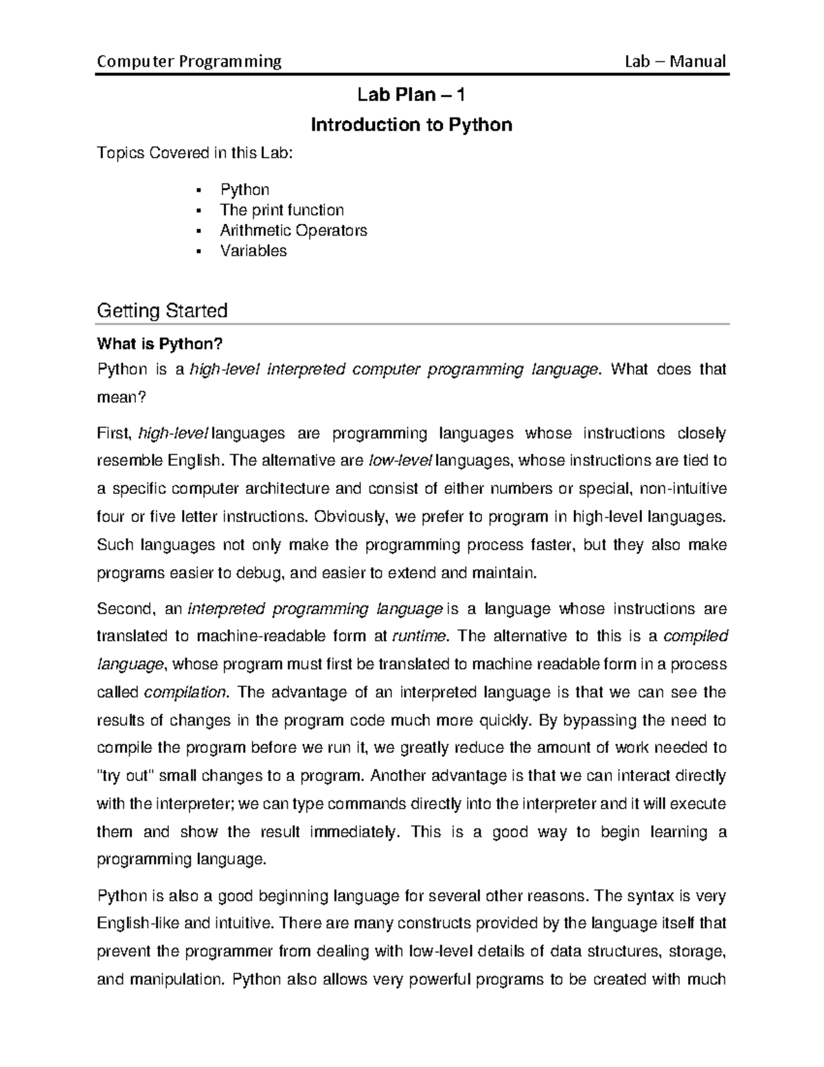 Python - Lab 8 - Introduction to Python Programming. Python is a ...