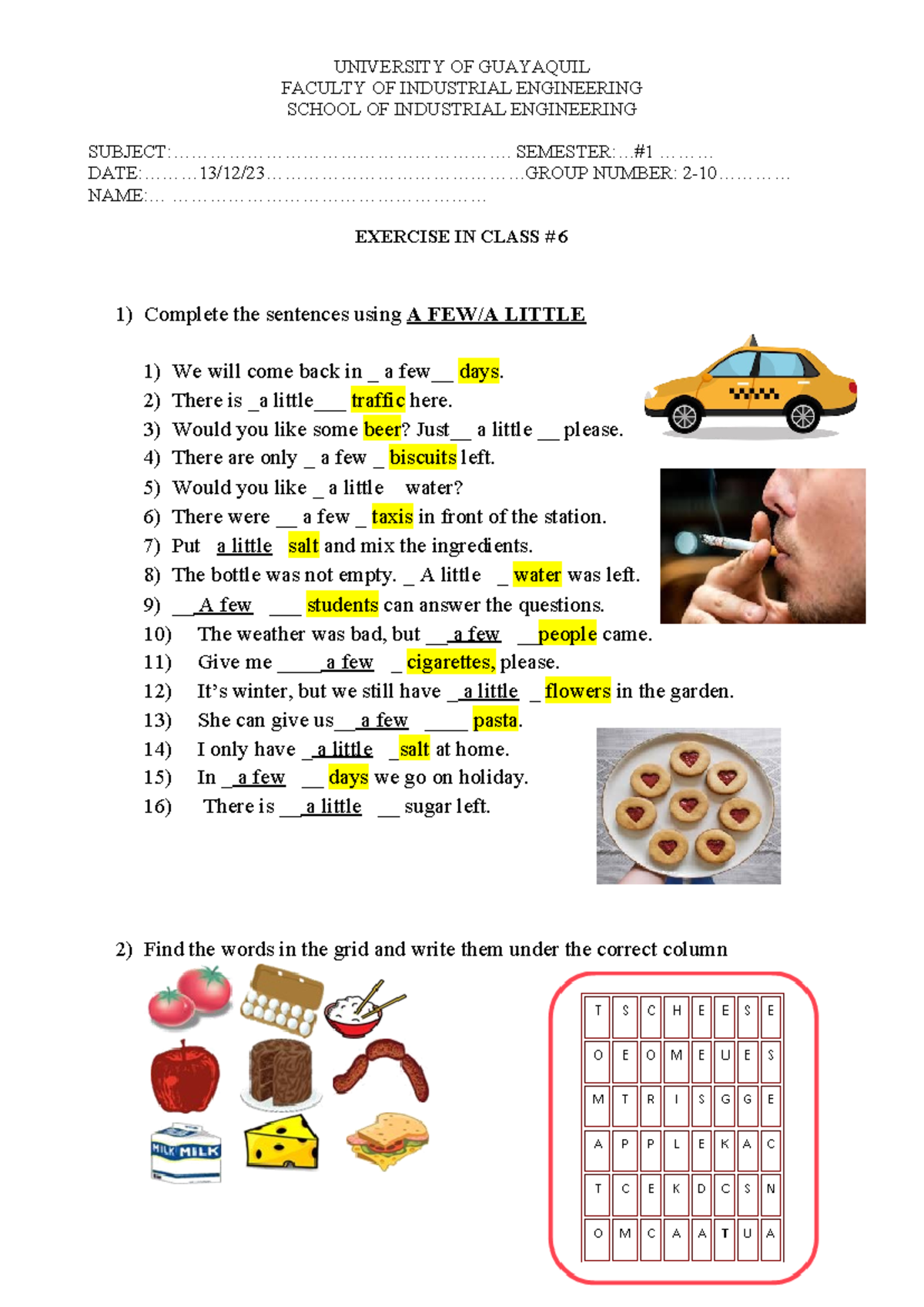 1. 1Exercise in Class 4 Englsih 2 A LOT A FEW A Little - UNIVERSITY OF ...