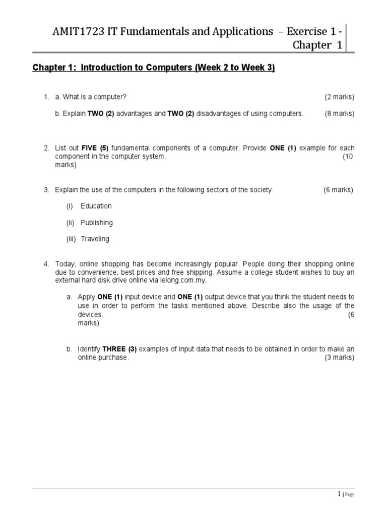 Exercise 1Q - Chapter 1 Introduction To Computers | PDF