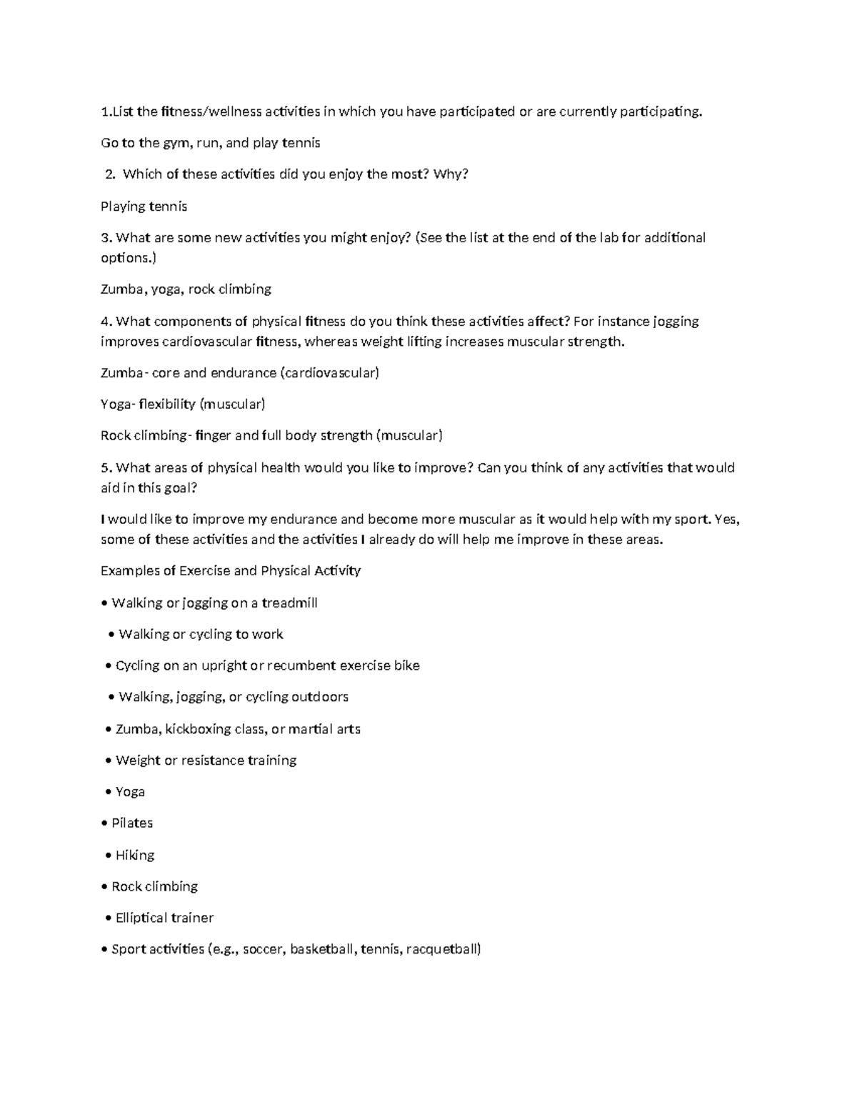 Week 3 1 - For a life fitness class - 1 the fitness/wellness activities ...