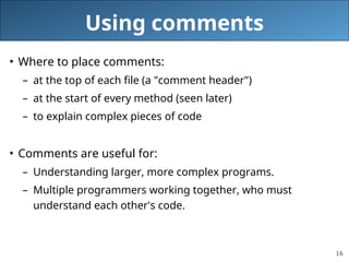 Java for Programmers: Basic Syntax Cheatsheet - Comments, | Course Hero